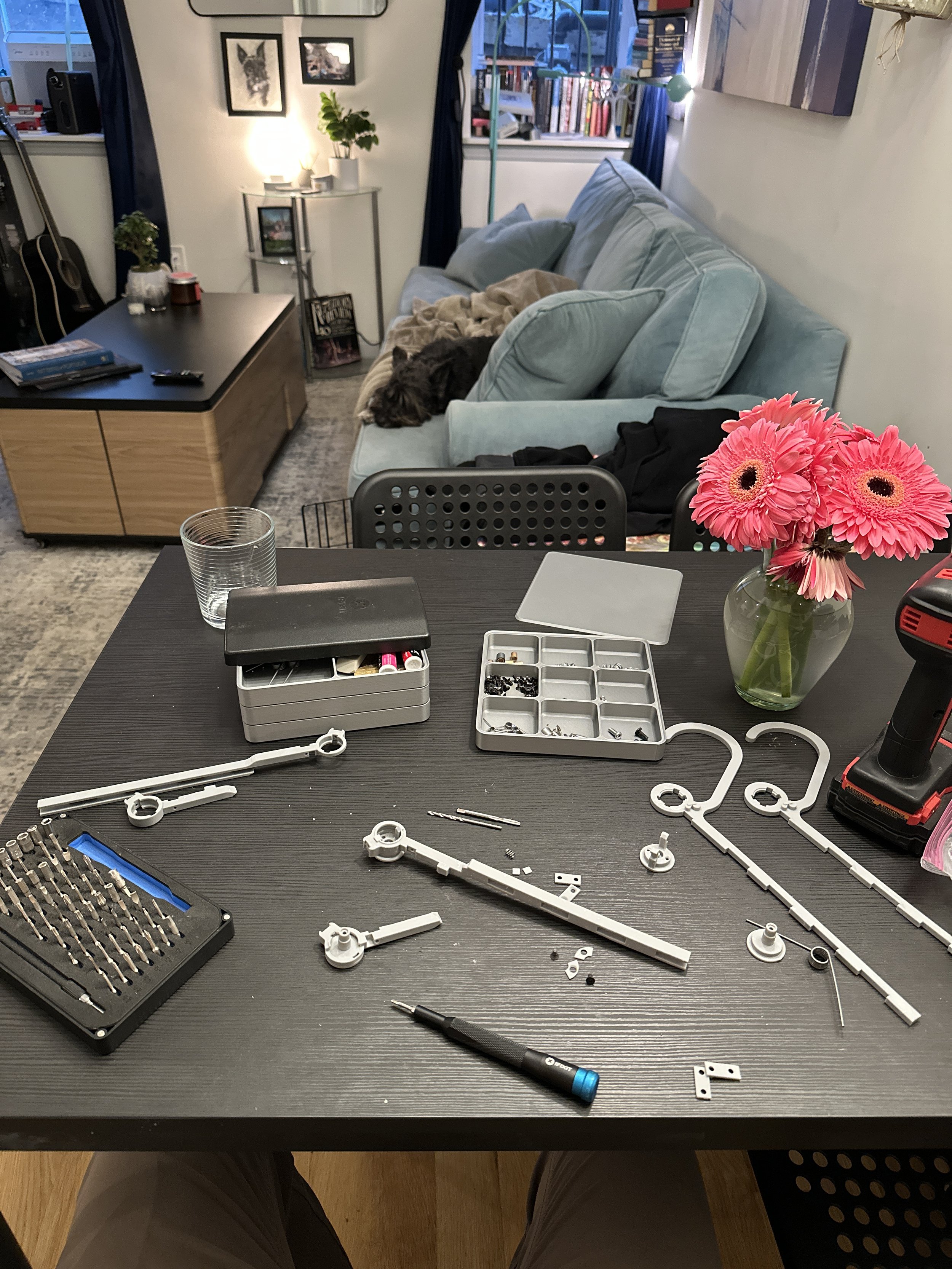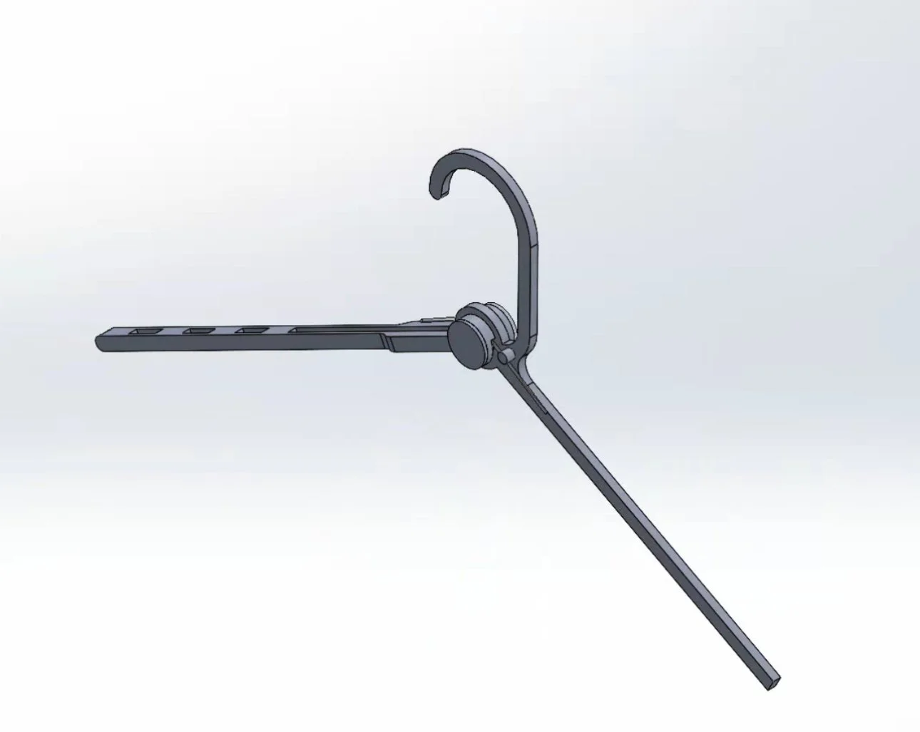 I was introduced to this project by a client on Fiverr. The client wanted a coat hanger that was automatically closing. Initially, I thought it would be a super simple project. This project ended up spanning 8 or 9 months. I went from a very simple hanging prototype, to making a fully working version. I spent many print hours on my Bambu X1-C to get the prints to come out right. The tolerances were also exceptionally difficult to get right. The hardware was fairly straight-forward. The inside of the coat hanger uses a very clever mechanism which when pushed in allows for the rotation of the hanging side of the coat hanger. The center of the mechanism has a spring which is compressed upon rotation. The wings on the back keep the button from popping out. It is not a straight-forward assembly process, but the design is SUPER cool, and extremely fluid to use. I was actually shocked at how much weight the hanger can hold as well. You can put any type of coat on it. I even have a 6 pound leather jacket which rests comfortably on the hanger without any sort of bending, warping, or breaking. With the current conditions of the product being 3D printed, the hanger lasts about 100 cycles before failure. The main failure point are the “key locks” that keep the hanger from rotating when not in use. I didn’t really do any simulations, as I can’t afford the solidworks software to do so. All of the design was done in solidworks.