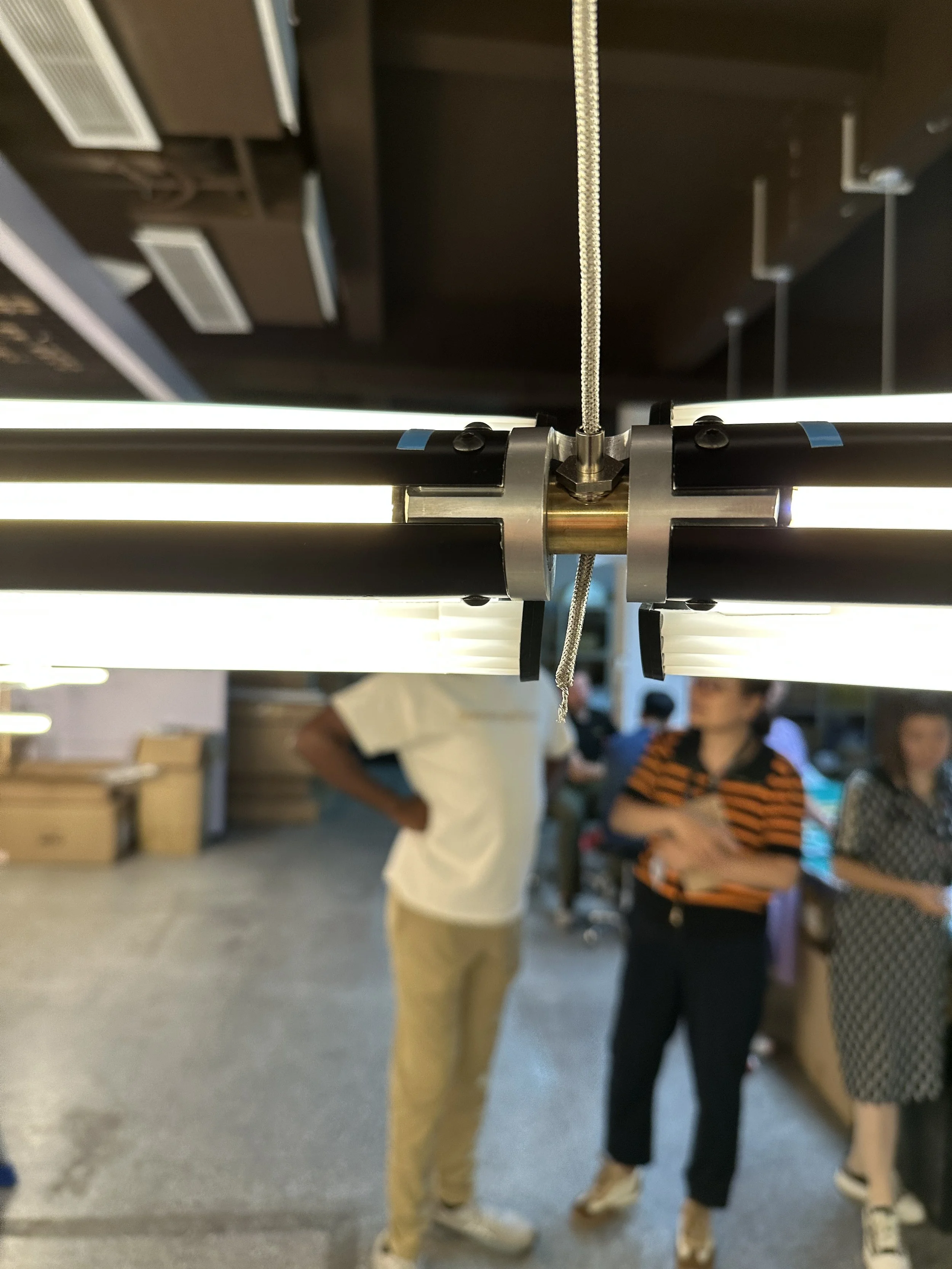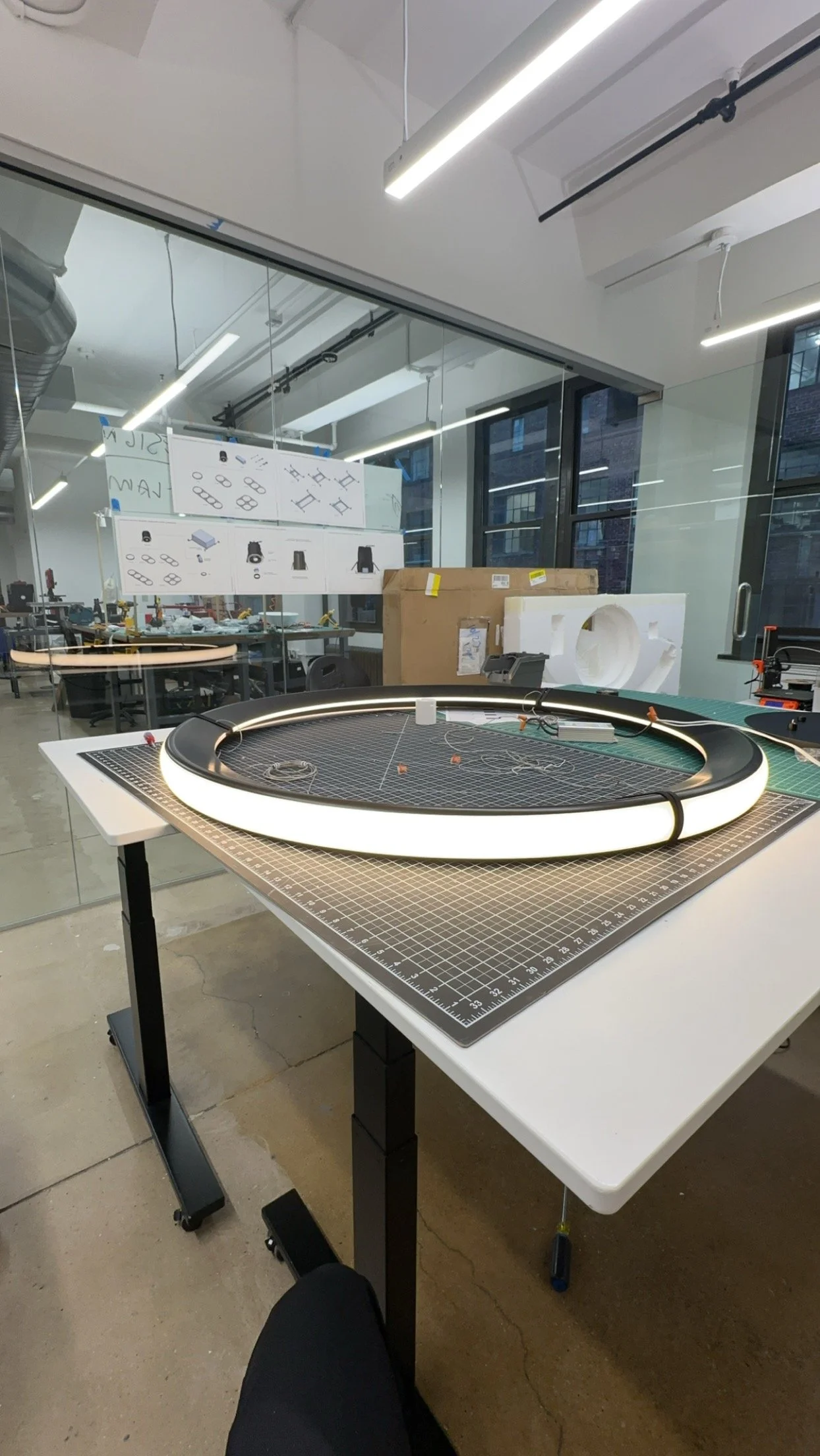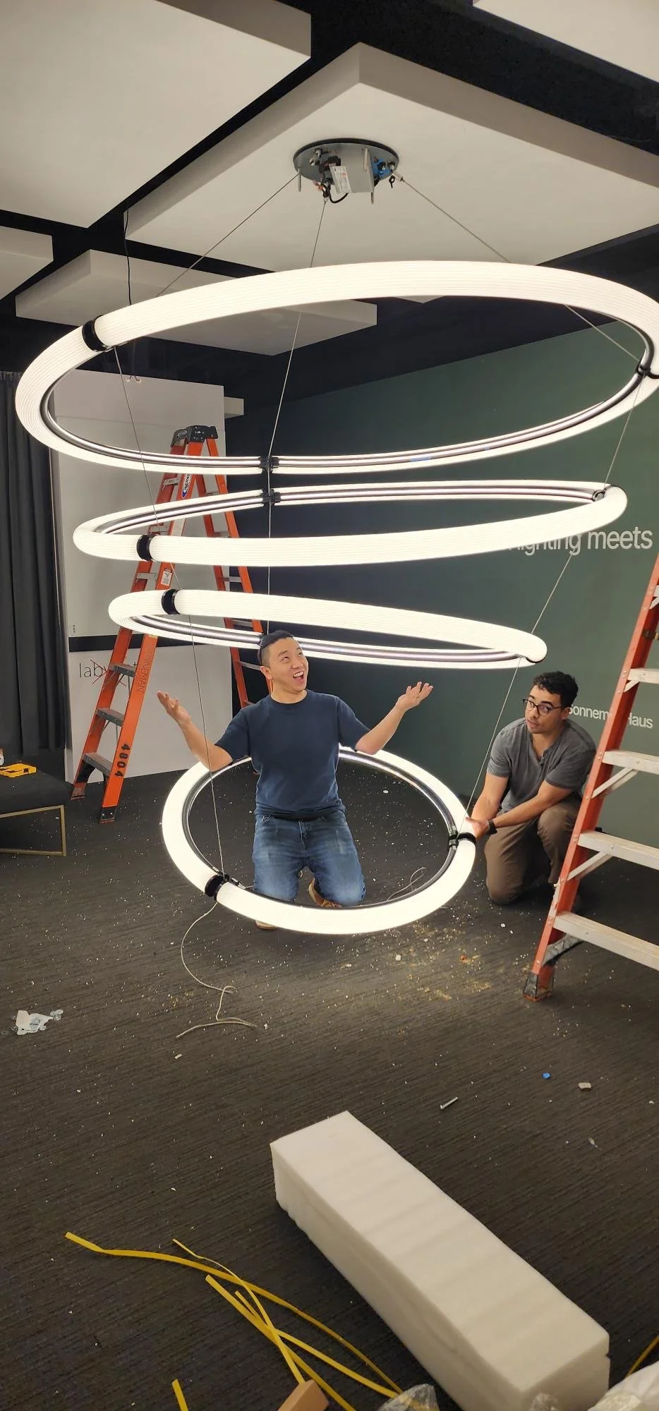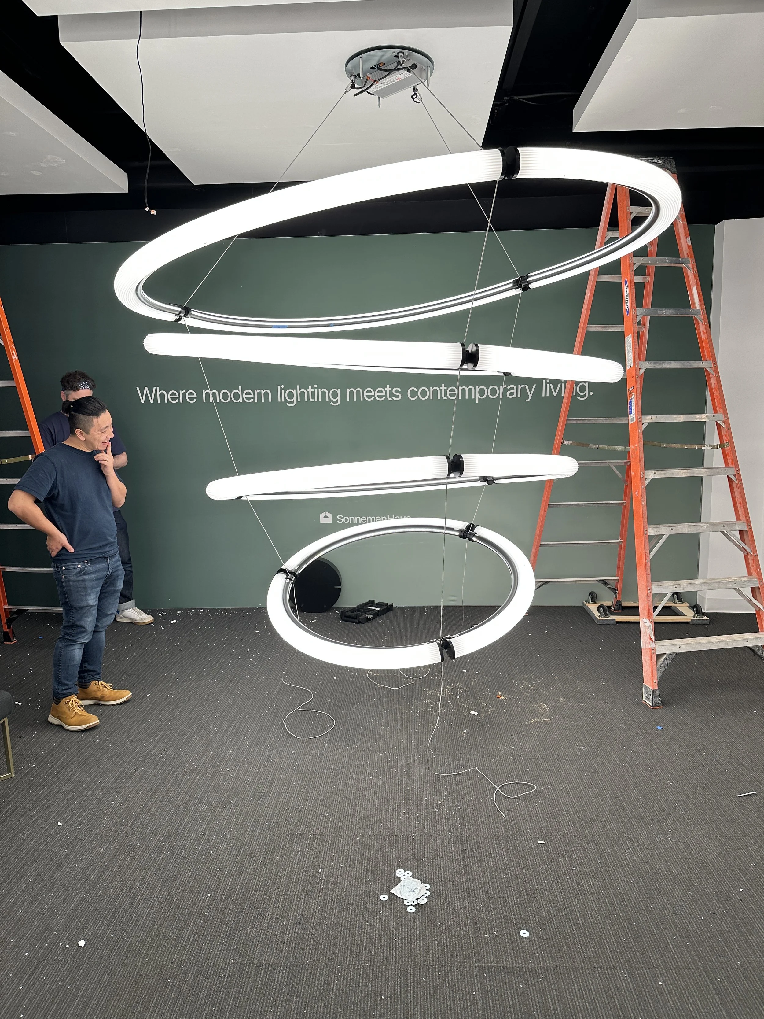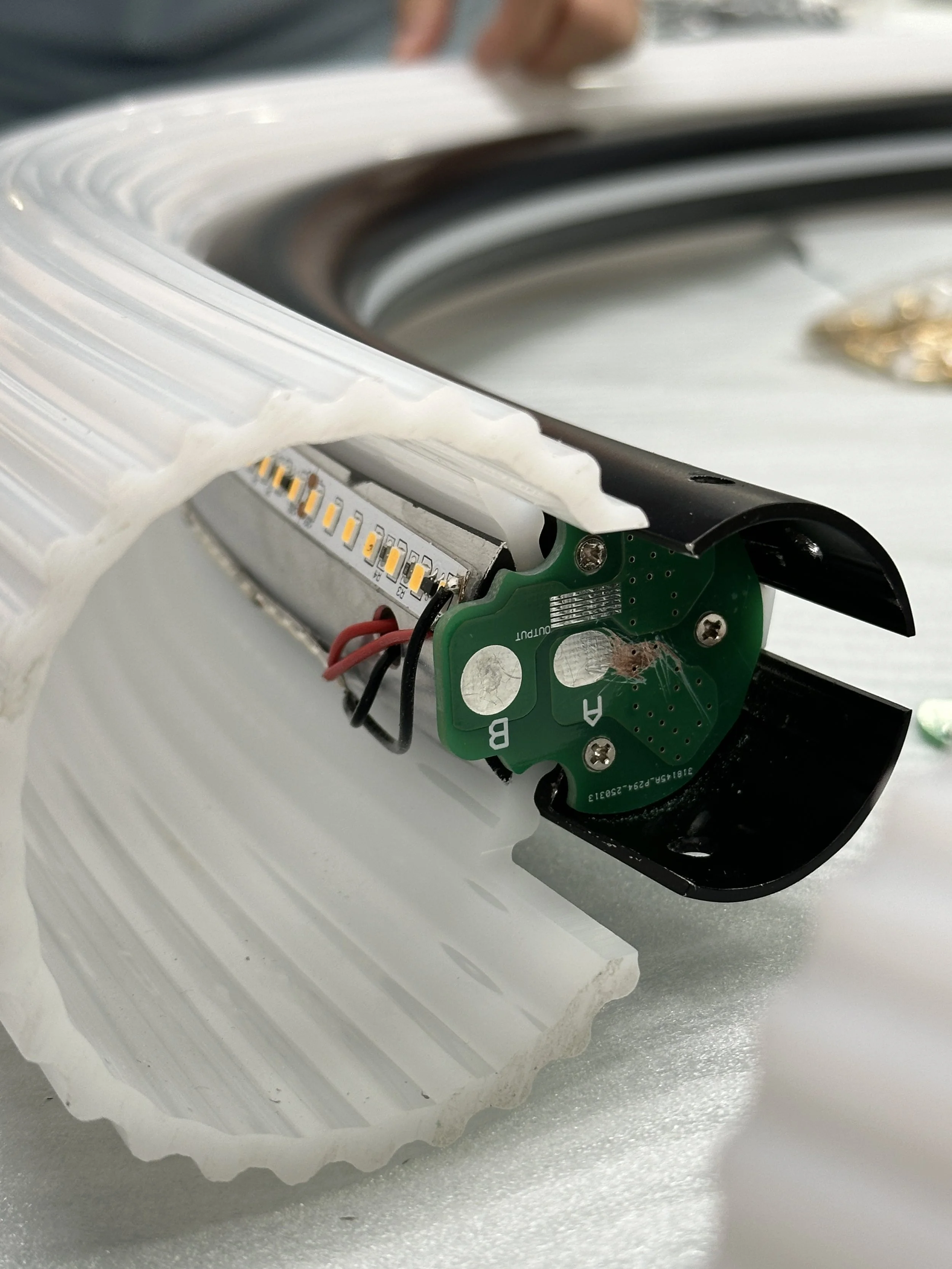 When I started at Sonneman, I was given a white goose chase of a project. Essentially, I was told to make an 8 foot ring with no power cables, and with rotating connectors that allowed the luminaires to be hung seamlessly at any angle. I completed this task in 2 weeks using Solidworks. No one thought the design would work, and so we went to the first prototype phase. After proving some mechanical concepts through 3D printing, we sent the design off to China. After many months, we received our first pass. We actually ended up re-making the whole thing because the designers did not like how it looked. Didn’t matter. We re-designed the body and chassis of the luminaire to ensure it fit the aesthetic requirements. After the re-design we started to find so many problems with the construction that required very creative solutions. They are as follows: